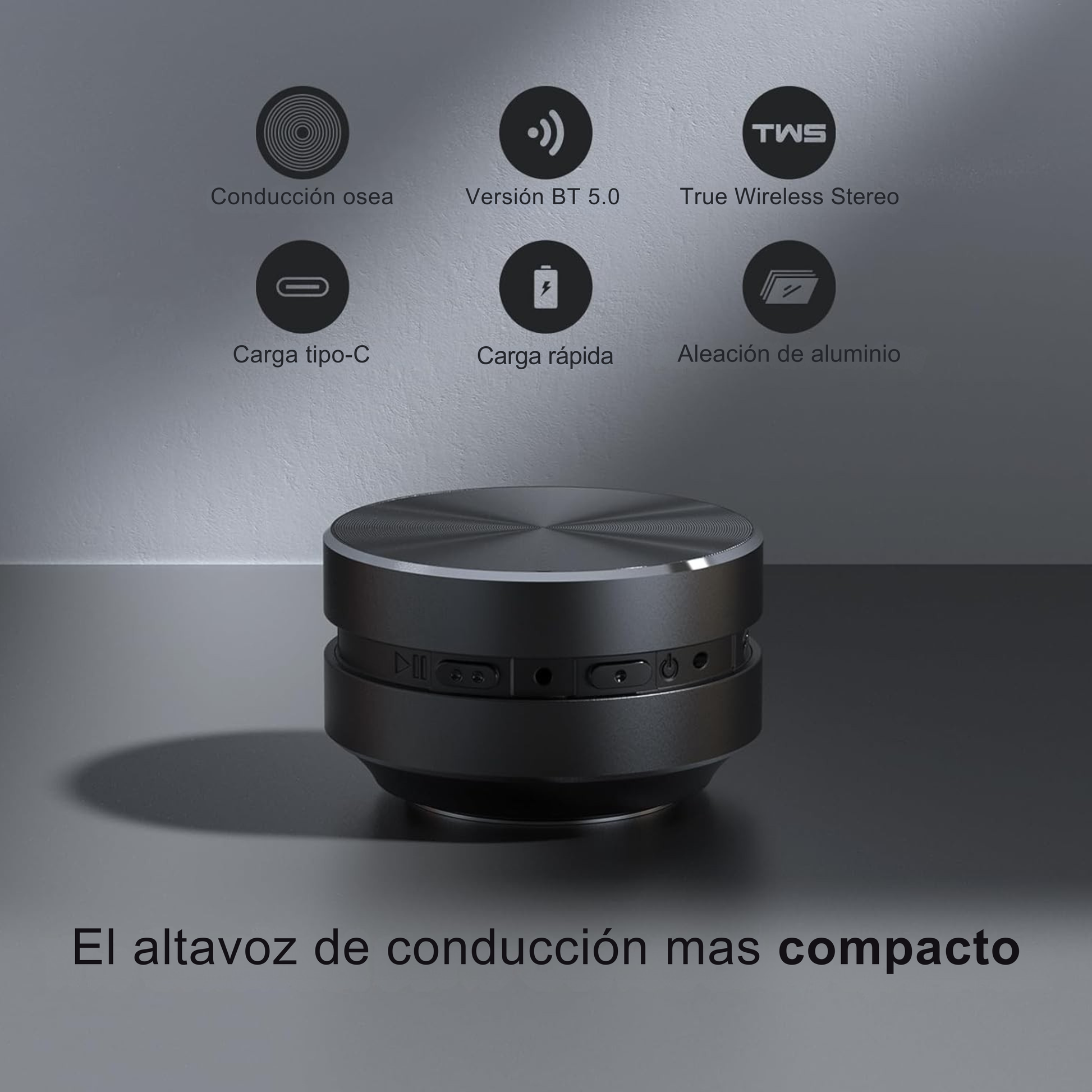 Imagina disfrutar de tu música sin aislarte del mundo: nuestro altavoz por conducción ósea te permite escuchar tus canciones con claridad mientras sigues atento a tu entorno.